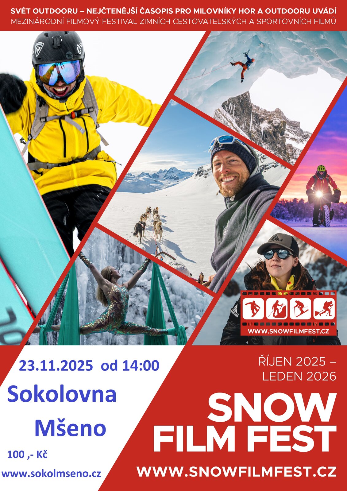 Srdečně Vás zveme na Mezinárodní filmový festival zimních cestovatelských a sportovních filmů, který pořádá časopis SVĚT OUTDOORU v Sokolovně Mšeno dne 23.11.2025 od 14:00.